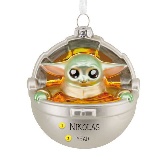 Bring the Force home this holiday season with this charming Grogu glass ornament! Perfect for Star Wars fans of all ages, this delightful decoration captures everyone's favorite character in shimmering glass. Hang it proudly on your tree and let the magic of a galaxy far, far away sparkle in your home. May the festive spirit be with you!