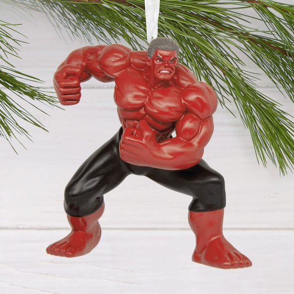 Unleash your holiday decorating with the Red Hulk™ Ornament. This playful, larger-than-life character will add a touch of humor and a pop of color to your tree. No need to be angry, this Hulk is here to spread some holiday joy.