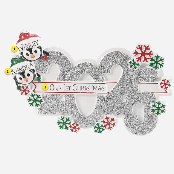 Celebrate the holiday season with this adorable 2025 Personalized Penguin Couple Ornament! Featuring a charming pair of penguins, this festive decoration can be customized to add a special touch to your Christmas tree.