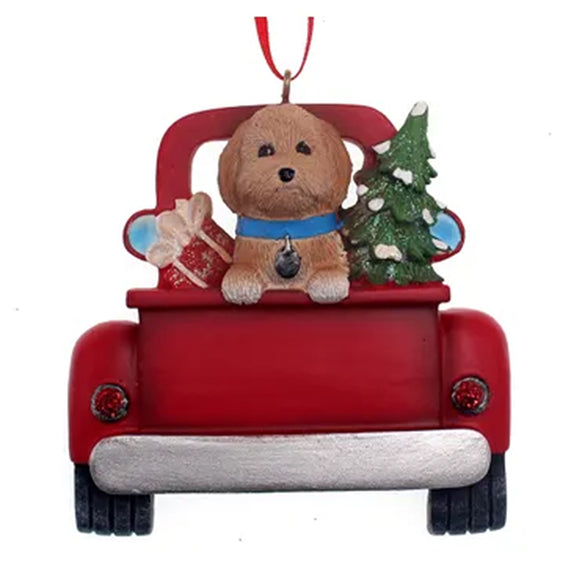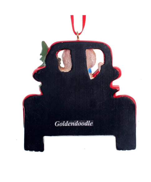 Personalized Golden Doodle Dog in Back of Truck Ornament
