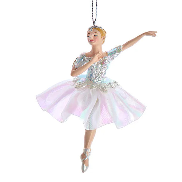 Celebrate the magic of dance with this charming Ballerina Ornament in opalescent finish. Featuring a graceful blonde ballerina, it adds a twinkle of elegance to your holiday décor. Perfect for twirling onto your tree or gifting to a dance lover!