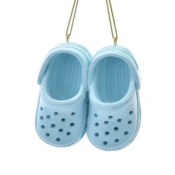 Kick up your holiday spirit with our Blue Clog Ornament! This tiny trendsetter brings comfort-shoe chic to your Christmas tree with its vibrant blue design and unmistakable holey pattern. Perfect for fashion-forward decorators or anyone who values both style and comfort! Hang this playful footwear favorite alongside traditional ornaments for a tree that says "cozy but cool." Who knew comfortable shoes could look so festive?