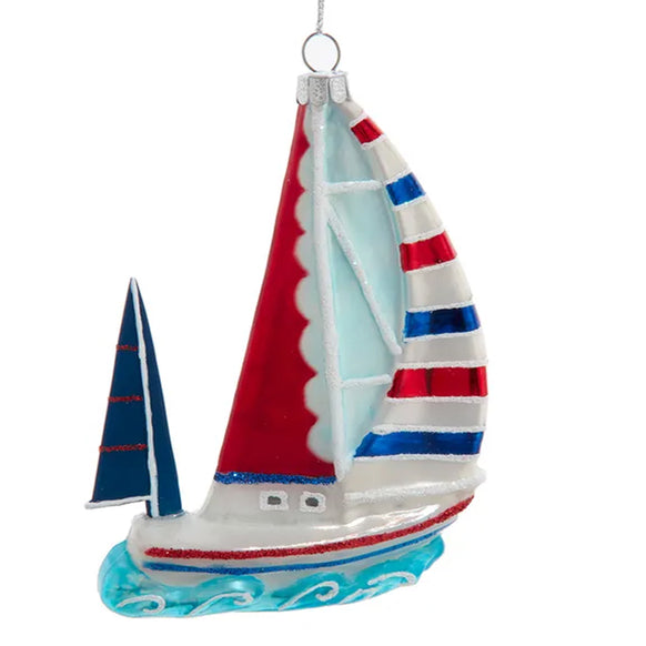Set sail on holiday cheer with this Glass Sailboat Red, White & Blue Ornament! Its vibrant colors and delicate glass design bring a playful nautical touch to your Christmas tree, making every festive moment feel like a breezy adventure on the open sea. Perfect for adding a splash of patriotic fun to your holiday décor!