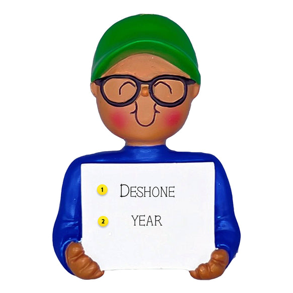 See your Christmas tree with new eyes with our personalized African American boy with glasses ornament. This clever and quirky addition to your holiday decor is perfect for those who like to stand out from the crowd. Make it even more special by adding a personalized touch!