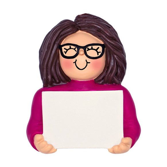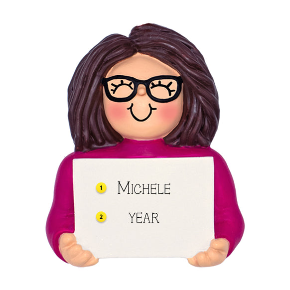 Add some personality to your tree! Our Personalized Girl with Glasses Ornament features a charming brunette wearing glasses. Perfect for anyone who loves unique and playful holiday decor.