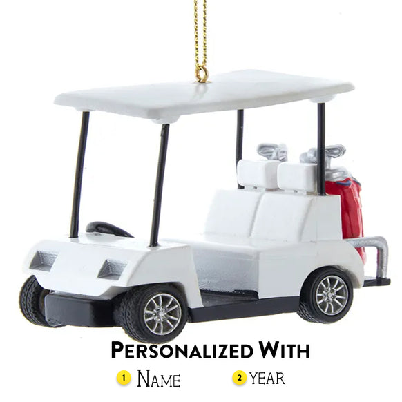 Celebrate your love for golf with this playful Personalized Golf Cart Ornament in cheerful white and red. Perfect for adding a fun, sporty touch to your holiday décor, it can be customized to showcase your name or a special message. Hang it on your tree or gift it to the golf enthusiast in your life for a festive swing of joy!