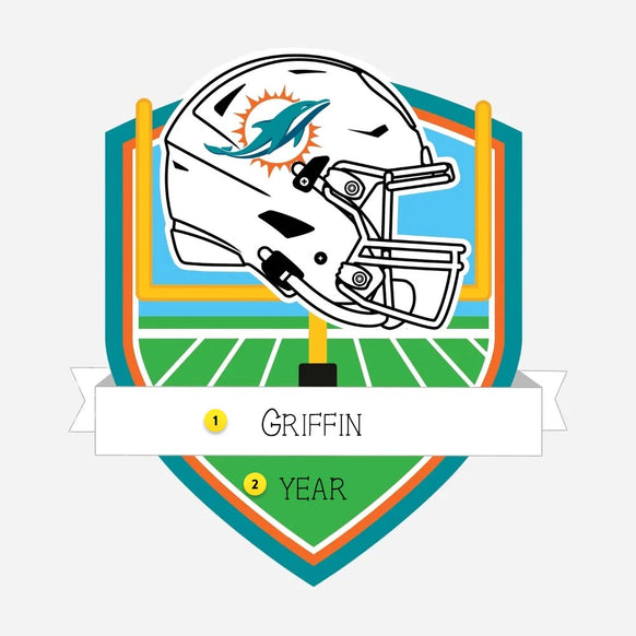 Have a playful touch to your holiday decor with this Personalized NFL-Miami Dolphins Shield Ornament. Show off your team pride and make it unique with a personalized touch. Perfect for any football fan, this ornament will be a fun addition to your Christmas tree (or your room) (go team!)