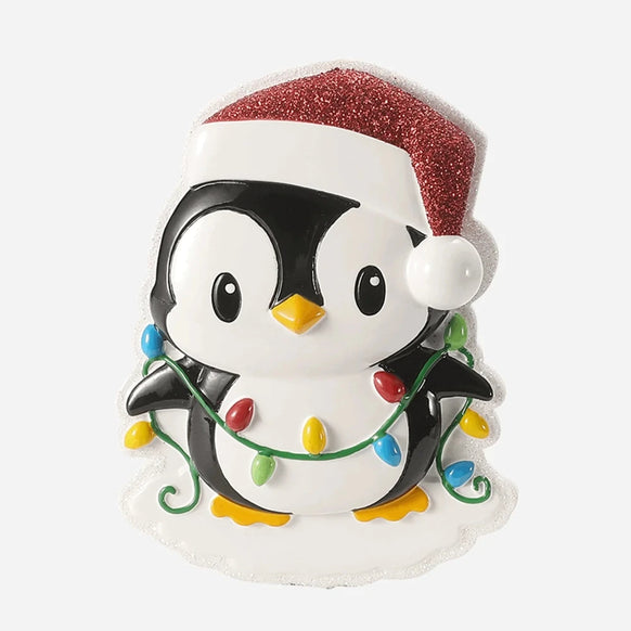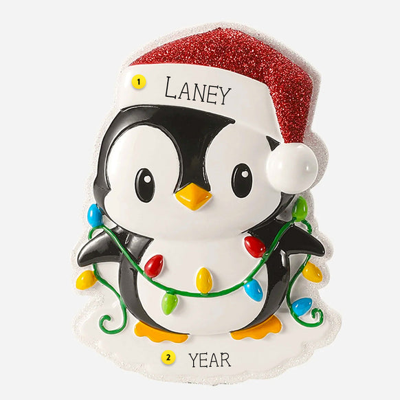 Add a splash of holiday cheer with this Personalized Penguin Wrapped in Lights Ornament. This charming little penguin, cozily wrapped in twinkling lights, brings a playful touch to your Christmas tree. Personalize it to make your festive décor truly one-of-a-kind and spread smiles all season long. Perfect for gifting or keeping as a merry keepsake!