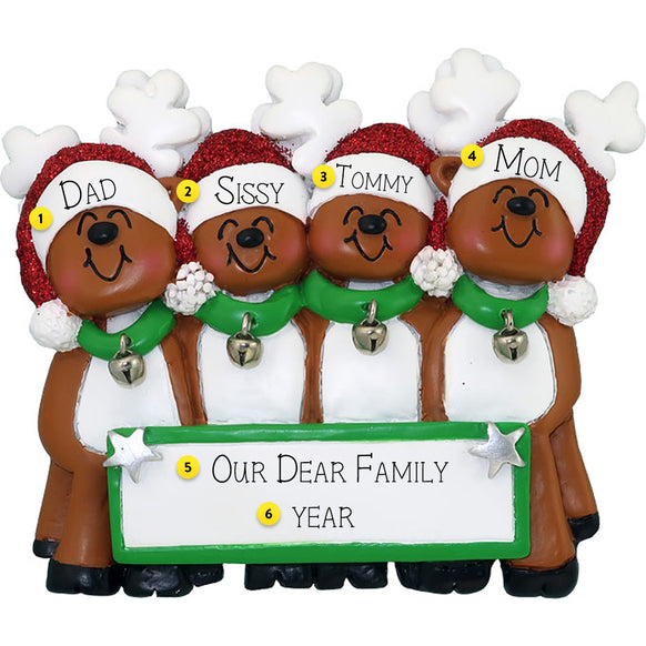 Personalized Reindeer Family of 4 Ornament