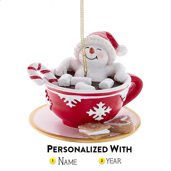 Snuggle up to the holidays with the Personalized Snowman In Cup of Cocoa Ornament! This charming snowman peeks out from a cozy cup of cocoa, ready to bring warmth and smiles to your tree. Customize it with a name or message for a playful, personal touch that makes your festive decor extra special.