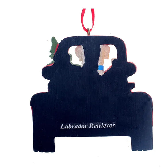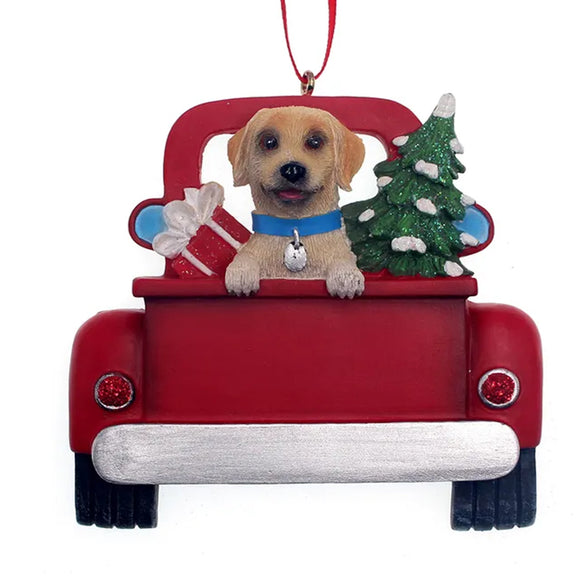 Personalized Yellow Labrador Dog in Back of Truck Ornament