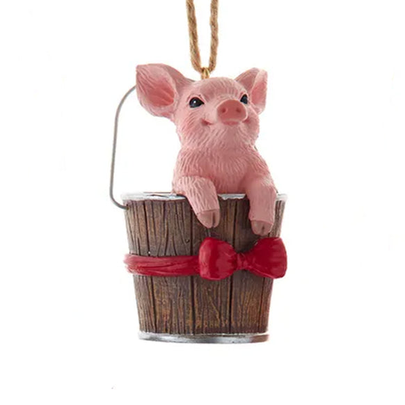 Celebrate the season with a touch of farmyard fun! The Pig in a Bucket Ornament features an adorable piglet peeking out from a bucket, adding a playful and charming accent to your Christmas tree. Perfect for bringing smiles and festive cheer to your holiday decorations.
