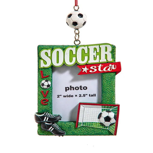 Celebrate your little soccer star with this playful Soccer Star Picture Frame Ornament! Perfect for showcasing a favorite photo, it adds a fun and sporty touch to your holiday décor. A charming keepsake that scores big on memories and festive cheer.