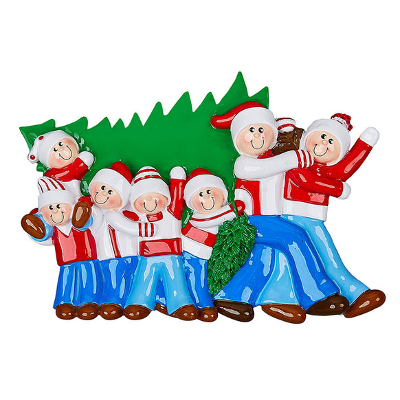 Find the perfect tree with this playful decoration for a family of 7. This cute table top piece captures the joy of picking out the right tree with loved ones. Bring the fun of tree shopping into your home all year round!